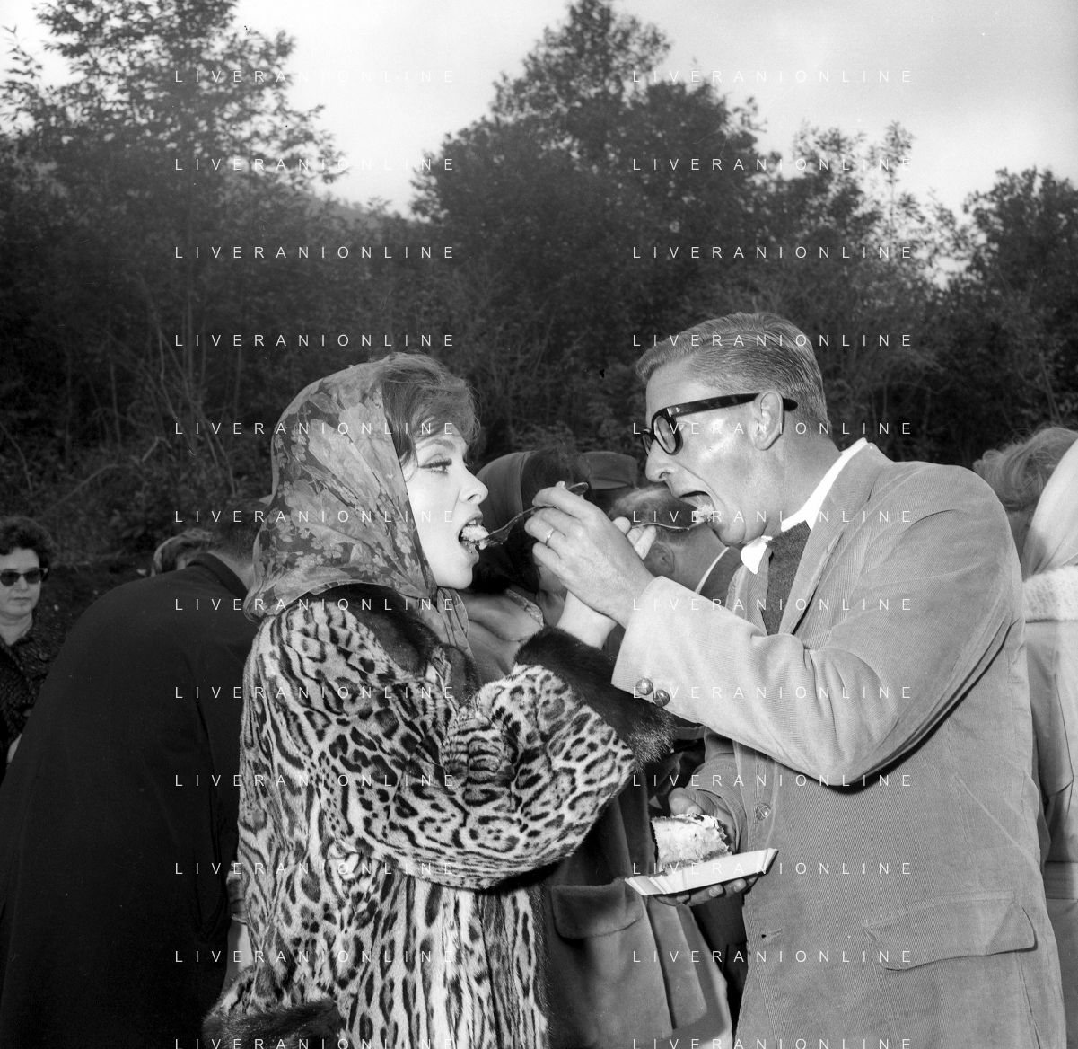 RETROSPETTIVA GINA LOLLOBRIGIDA ATTRICE NELLA FOTO CON ROCK HUDSON SUL SET DEL FILM "TORNA A SETTEMBRE" NEL 1961 durante una pausa delle riprese AG ALDO LIVERANI SAS