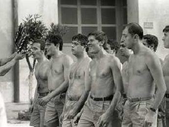 RETROSPETTIVA GIANNI MORANDI CANTANTE NELLA FOTO GIANNI MORANDI NEL FILM 'LA CHIMERA" NELL'ANNO 1968 CON LINO TOFFOLO AG ALDO LIVERANI SAS