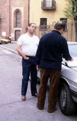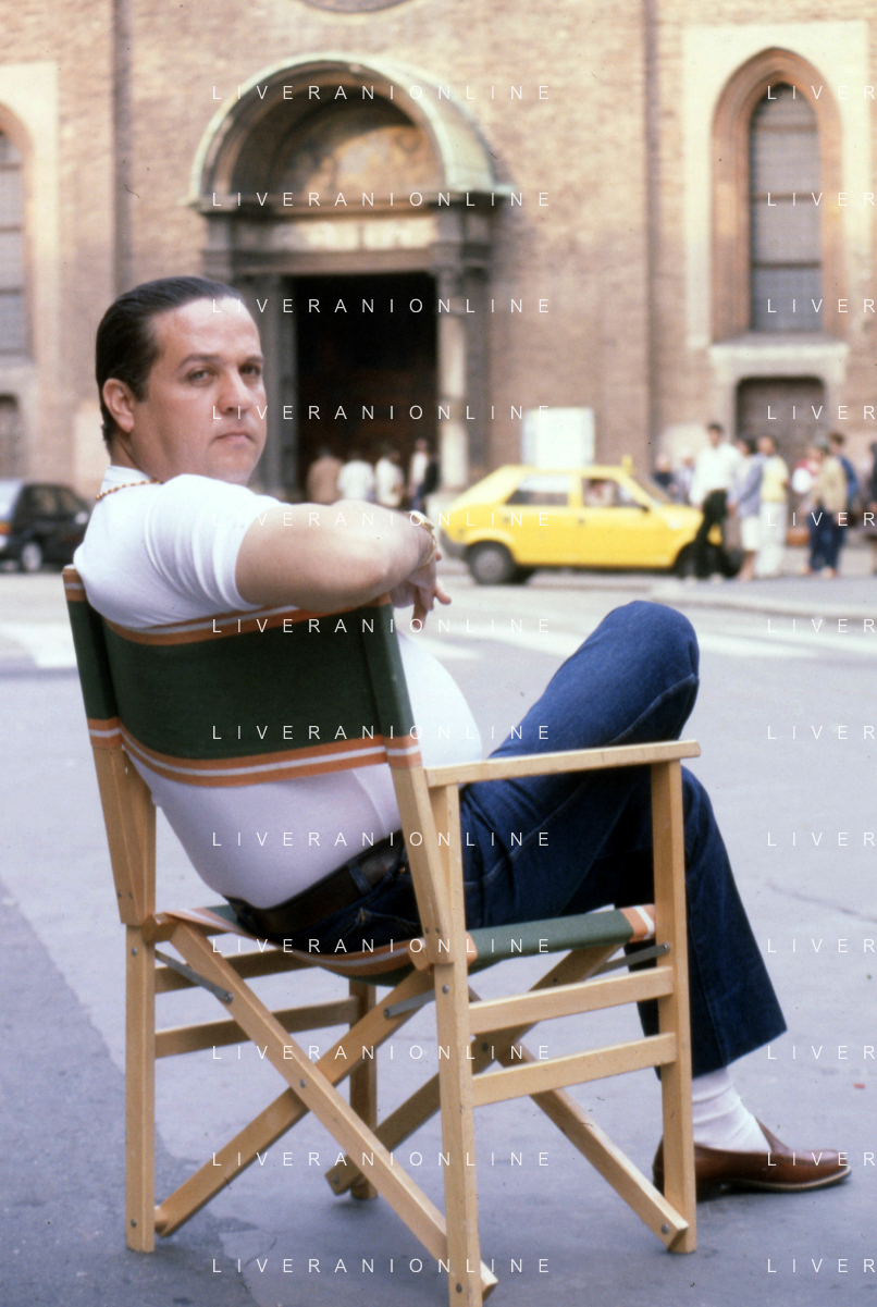 DIAP- RETROSPETTIVA RENATO POZZETTO ATTORE NELLA FOTO SUL SET DURANTE LE RIPRESE DEL FILM “CULO E CAMICIA“ REGIA DI PASQUALE FESTA CAMPANILE, A MILANO NELL'ANNO 1981 AG ALDO LIVERANI SAS