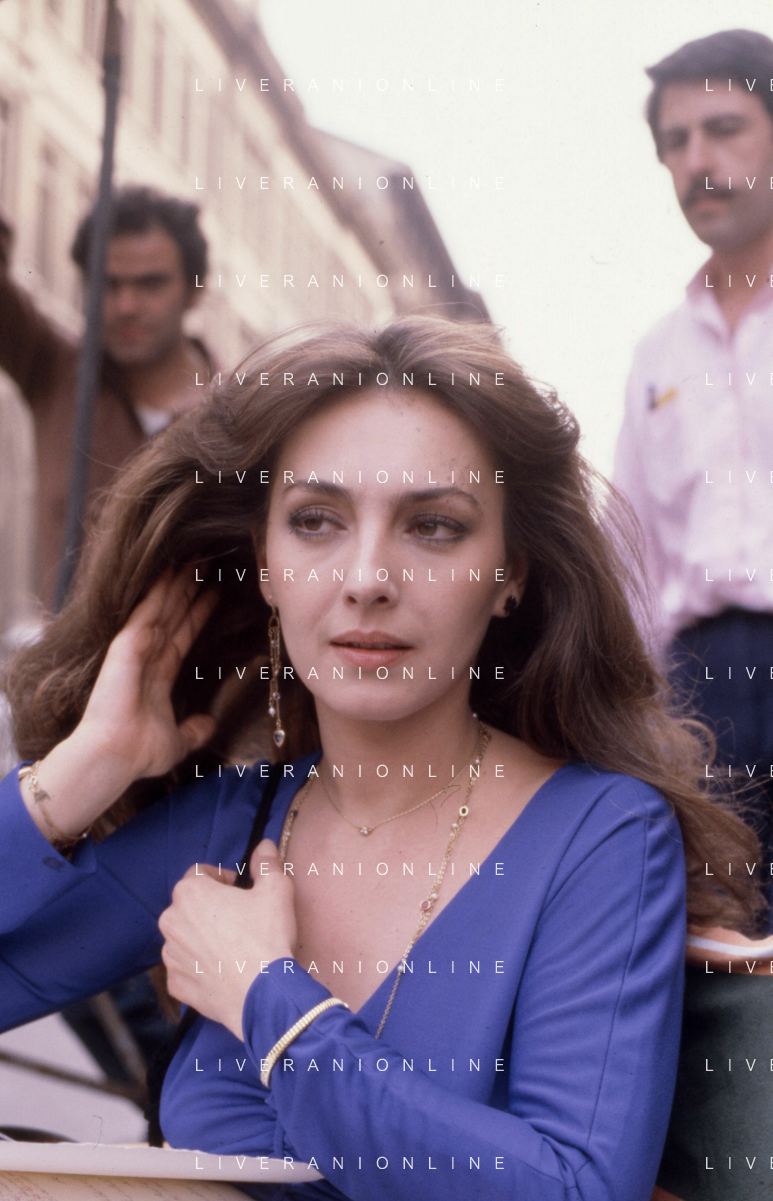 DIAP-RETROSPETTIVA MARIA ROSARIA OMAGGIO ATTRICE NELLA FOTO SUL SET DURANTE LE RIPRESE DEL FILM “CULO E CAMICIA“ REGIA DI PASQUALE FESTA CAMPANILE A MILANO NELL'ANNO 1981 AG ALDO LIVERANI SAS