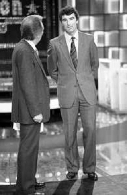 PENTATLON gioco televisivo a premi, trasmesso su Canale 5 nel 1987, condotto da Mike Bongiorno Nella foto con il ciclista Gianbattista Baronchelli ©Archivio Giovanni Liverani / AGENZIA ALDO LIVERANI SAS