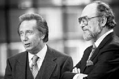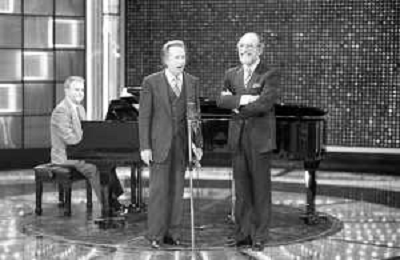 vincenzo torriani e bartali ginoPENTATLON gioco televisivo a premi, trasmesso su Canale 5 nel 1987, condotto da Mike Bongiorno Nella foto con il ciclista gino bartali e vincenzo torriani ©Archivio Giovanni Liverani / AGENZIA ALDO LIVERANI SAS