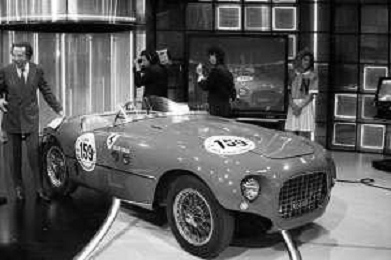 PENTATLON gioco televisivo a premi, trasmesso su Canale 5 nel 1987, condotto da Mike Bongiorno Nella foto con la Ferrari ©Archivio Giovanni Liverani / AGENZIA ALDO LIVERANI SAS