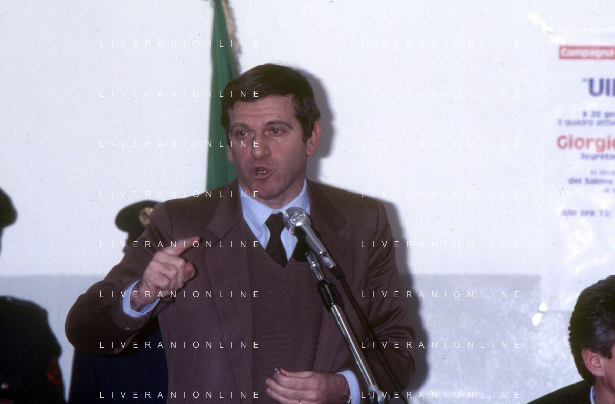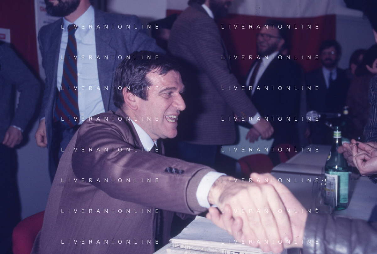 DIAP-RETROSPETTIVA GIORGIO BENVENUTO POLITICO NELLA FOTO GIORGIO BENVENUTO A MILANO NELL'ANNO 1984 AG ALDO LIVERANI SAS