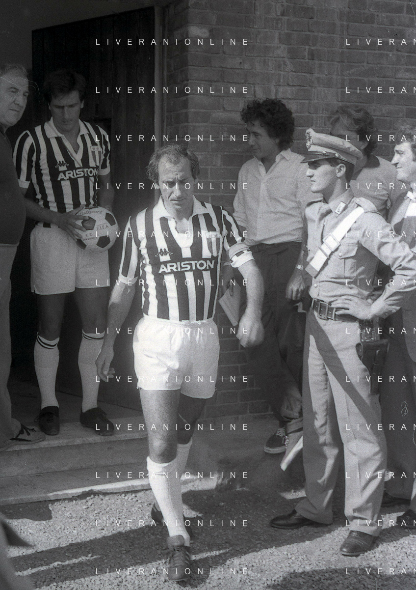 1982-1983-VILLAR PEROSA VISITA DEL PRESIDENTE GIANNI AGNELLI PRIMA DELLA PARTITA JUVENTUS A- JUVENTUS B NELLA FOTO GUSEPPE FURINO E GAETANO SCIREA AG ALDO LIVERANI SAS