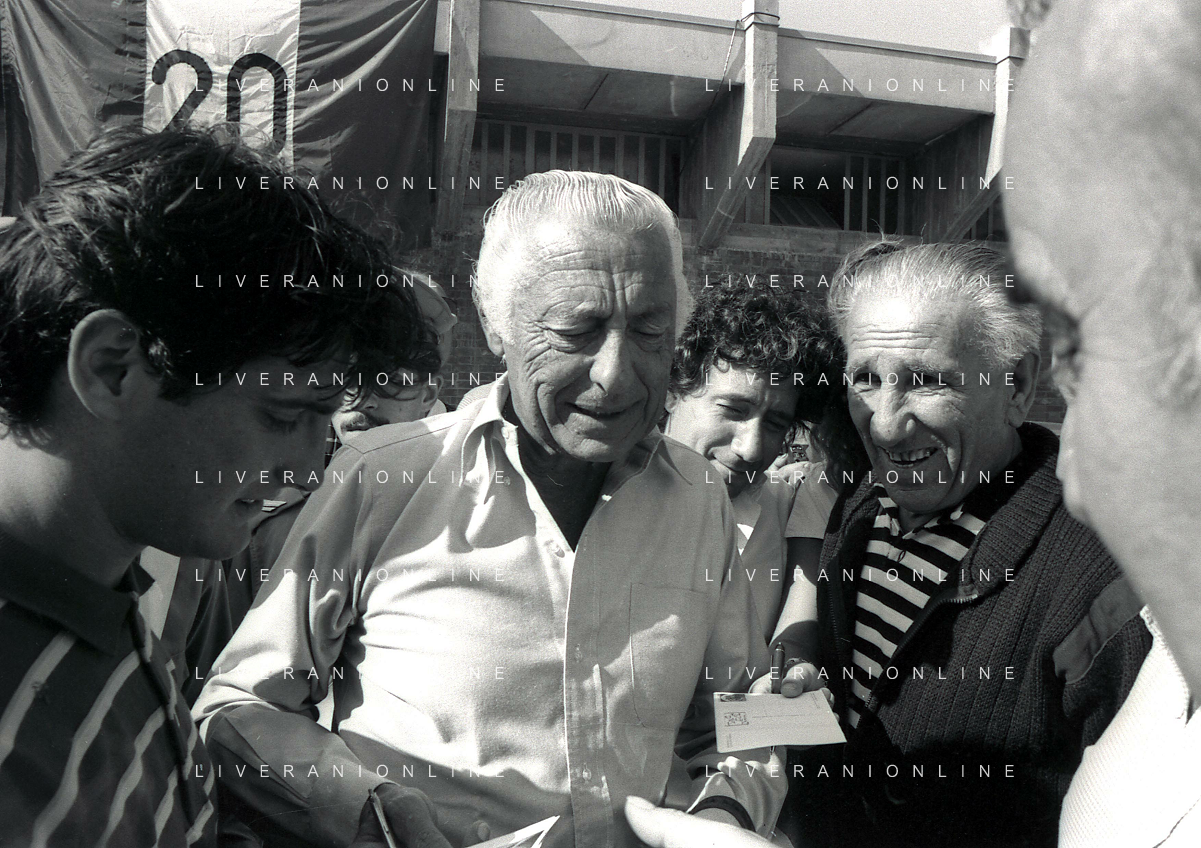 1982-1983-VILLAR PEROSA VISITA DEL PRESIDENTE GIANNI AGNELLI PRIMA DELLA PARTITA JUVENTUS A- JUVENTUS B NELLA FOTO GIANNI AGNELLI CON JAS GAWRONSKI AG ALDO LIVERANI SAS