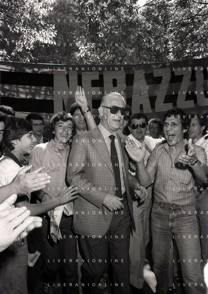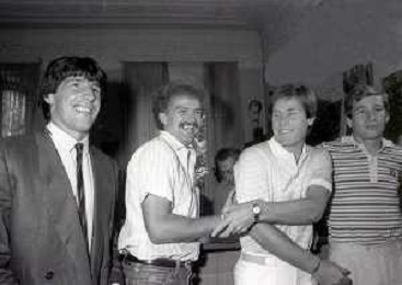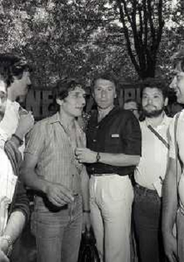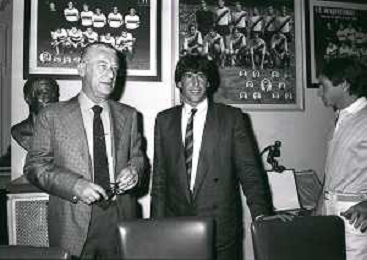 1981 MILANO RADUNO FC INTER IN SEDE PER IL RITIRO ESTIVO PRE CAMPIONATO NELLA FOTO IVANOE FRAIZZOLI PRESIDENTE INTER CON SALVATORE BAGNI AG ALDO LIVERANI SAS
