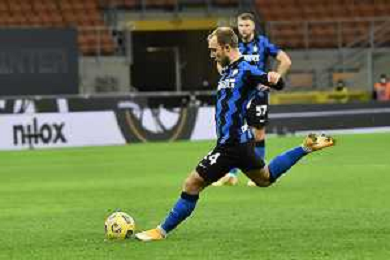 Christian Eriksen (Inter) segna il gol del 2 a 1 su punizione Inter vs Milan Coppa Italia - quarti di finale Milano 26-01-2021 Stadio Giuseppe Meazza - San Siro foto Roberto Garavaglia/ag. Aldo Liverani sas /AGENZIA ALDO LIVERANI SAS