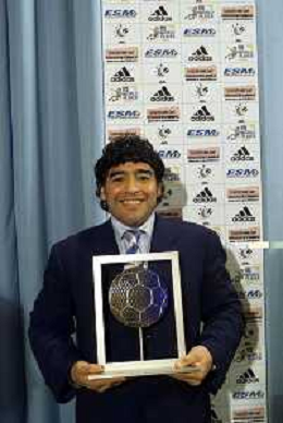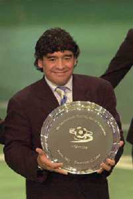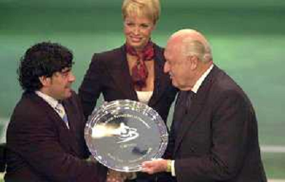 ROMA, 11/12/2000 FIFA WORLD PLAYER 2000 DIEGO ARMANDO MARADONA CON IL PREMIO RICEVUTO aldo liverani s a s
