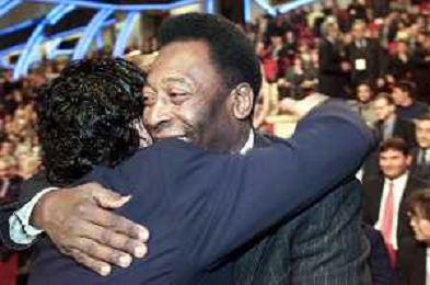 ROMA, 11/12/2000 FIFA WORLD PLAYER 2000 PELE' E DIEGO ARMANDO MARADONA SI ABBRACCIANO aldo liverani s a s
