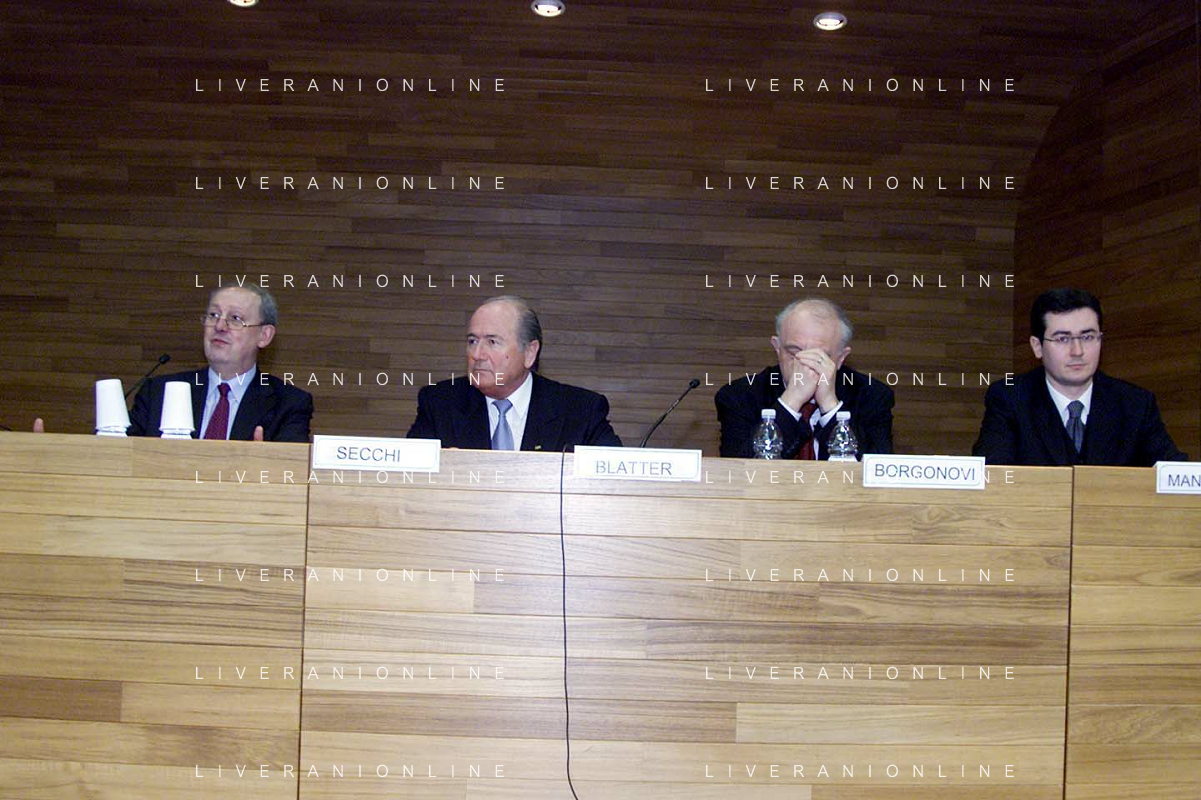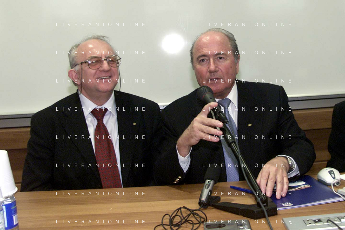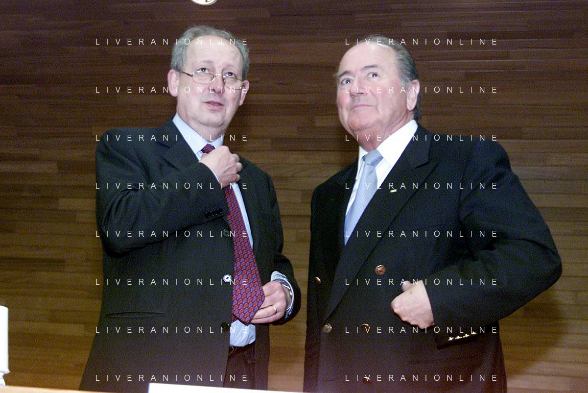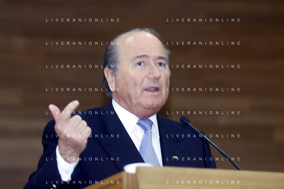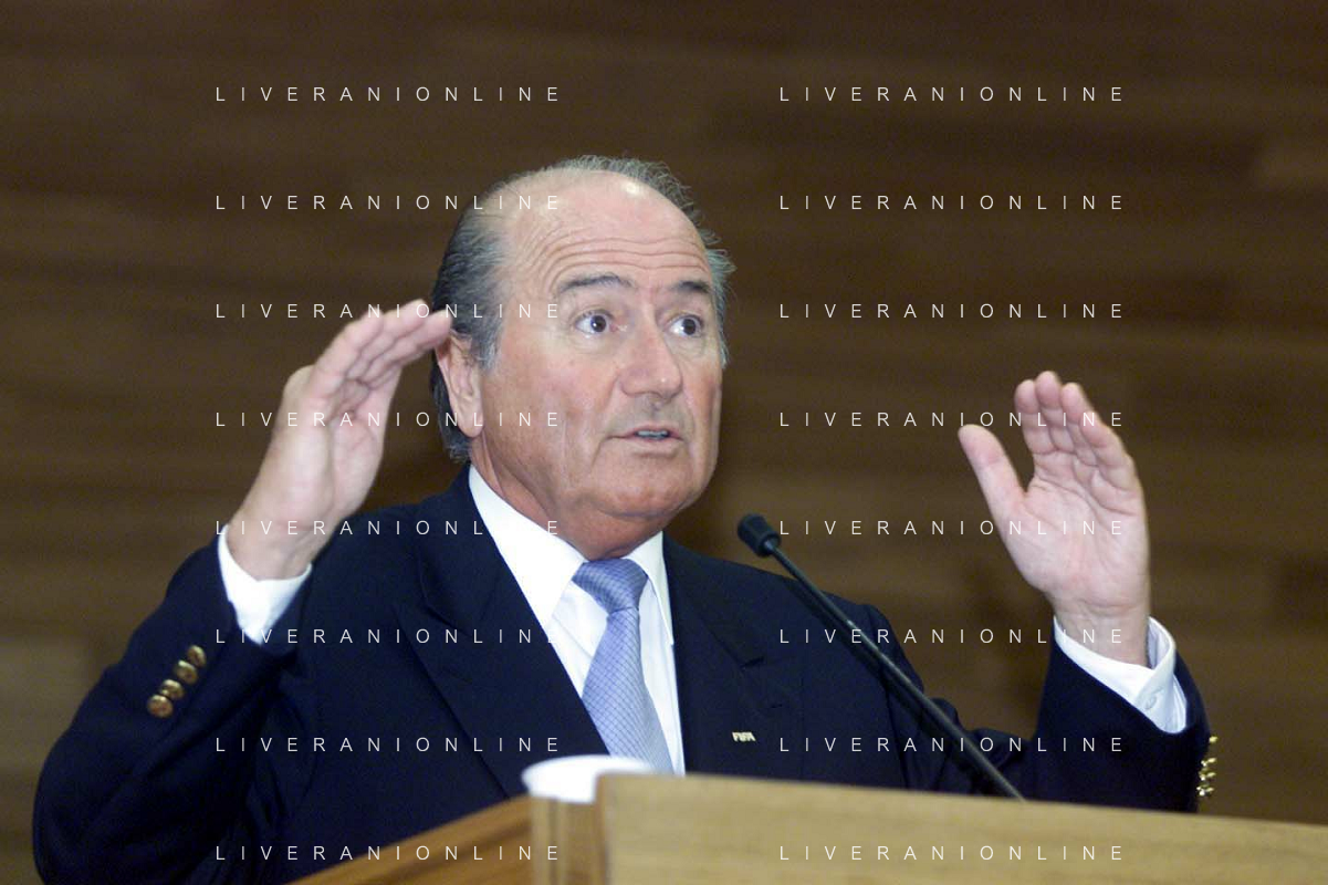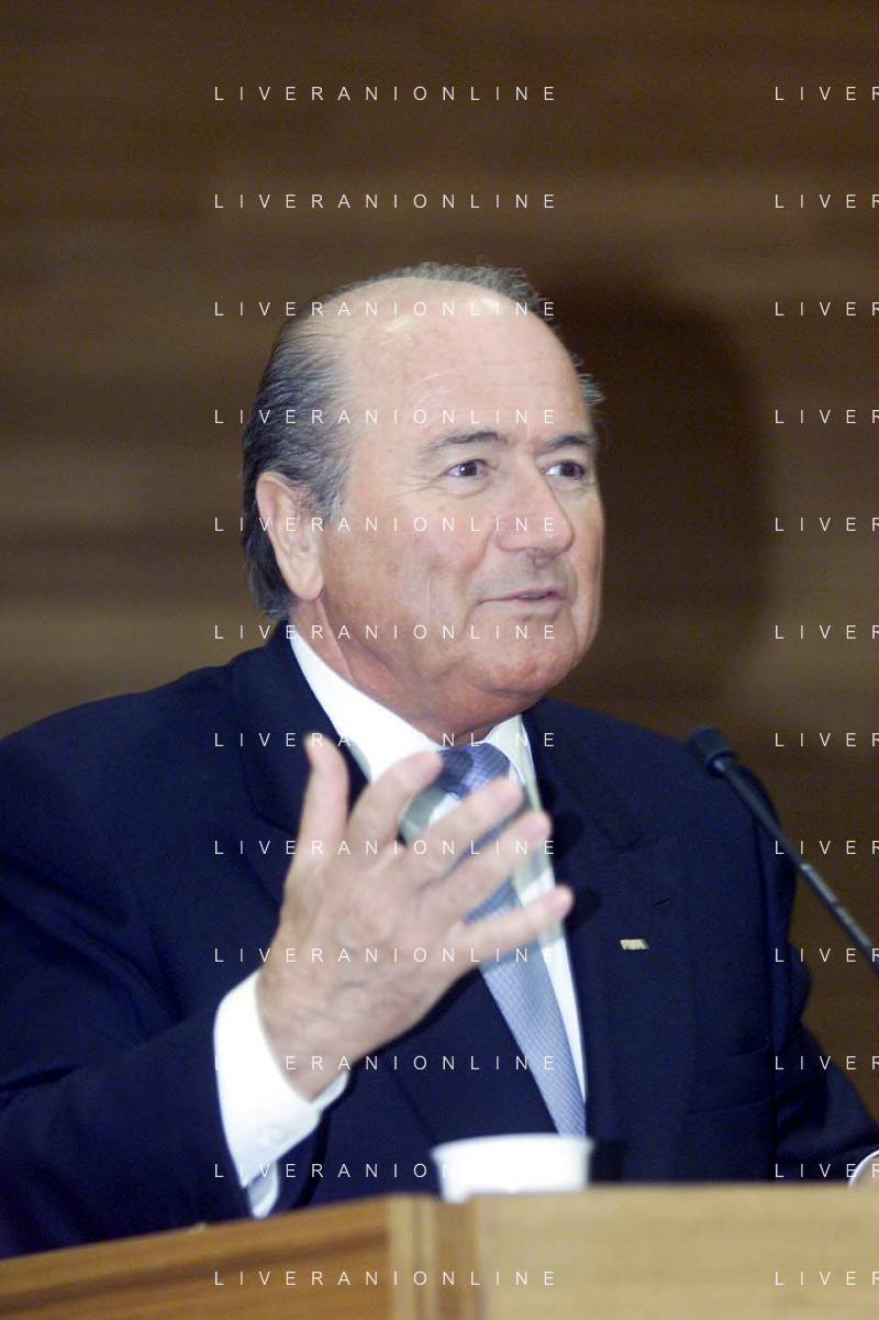 MILANO, 11-03-02 DFP/MARCO LUSSOSO CONFERENZA ALLA BOCCONI DI JOSEPH BLATTER. AG ALDO LIVERANI S A S