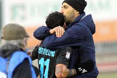 IMOLA 03 02 2021 IMOLESE CALCIO-FERALPISALO' 3-0 SERIE C NELLA FOTO ABBRACCIO TRA ACCURSIO BENTIVEGNA E ALLENATORE PASQUALE CATALANO ©SANNA / AGENZIA ALDO LIVERANI SAS