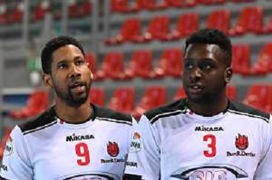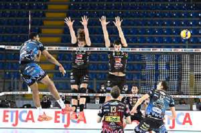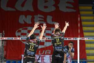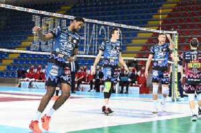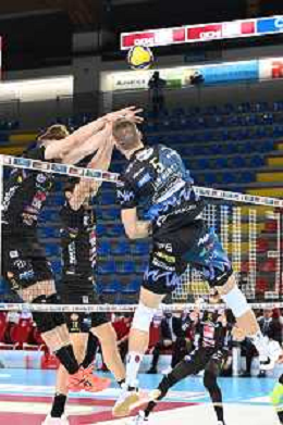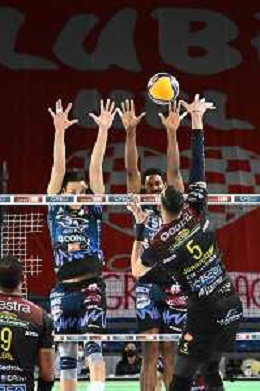 Roberto Bartomeoli/LM - Cucine Lube Civitanova vs Sir Safety Conad Perugia - Volleyball Italian Serie A Men Superleague Championship 2020/2021 03 February 2021 - Eurosuole Forum, civitanova marche, Italy Photo showing: Wilfredo Leon Venero (Sir Safety Conad Perugia) and Sharone Vernon-Evans (Sir Safety Conad Perugia) @LM/Roberto Bartomeoli/ AGENZIA ALDO LIVERANI SAS