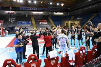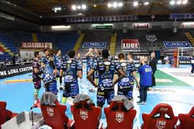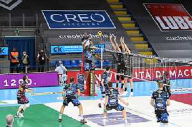 Roberto Bartomeoli/LM - Cucine Lube Civitanova vs Sir Safety Conad Perugia - Volleyball Italian Serie A Men Superleague Championship 2020/2021 03 February 2021 - Eurosuole Forum, civitanova marche, Italy Photo showing: Cucine Lube Civitanova @LM/Roberto Bartomeoli/ AGENZIA ALDO LIVERANI SAS