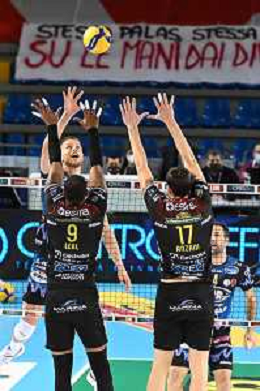 Roberto Bartomeoli/LM - Cucine Lube Civitanova vs Sir Safety Conad Perugia - Volleyball Italian Serie A Men Superleague Championship 2020/2021 03 February 2021 - Eurosuole Forum, civitanova marche, Italy Photo showing: Block of Simone Anzani (Cucine Lube Civitanova) and Kamil Rychlicki (Cucine Lube Civitanova) @LM/Roberto Bartomeoli/ AGENZIA ALDO LIVERANI SAS
