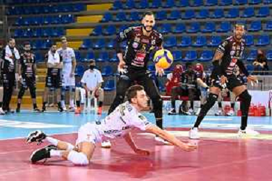 Roberto Bartomeoli/LM - Cucine Lube Civitanova vs Sir Safety Conad Perugia - Volleyball Italian Serie A Men Superleague Championship 2020/2021 03 February 2021 - Eurosuole Forum, civitanova marche, Italy Photo showing: Stefano Recine (Sir Safety Conad Perugia) @LM/Roberto Bartomeoli/ AGENZIA ALDO LIVERANI SAS