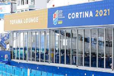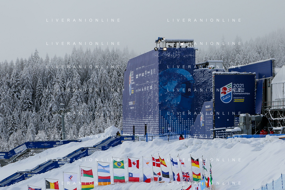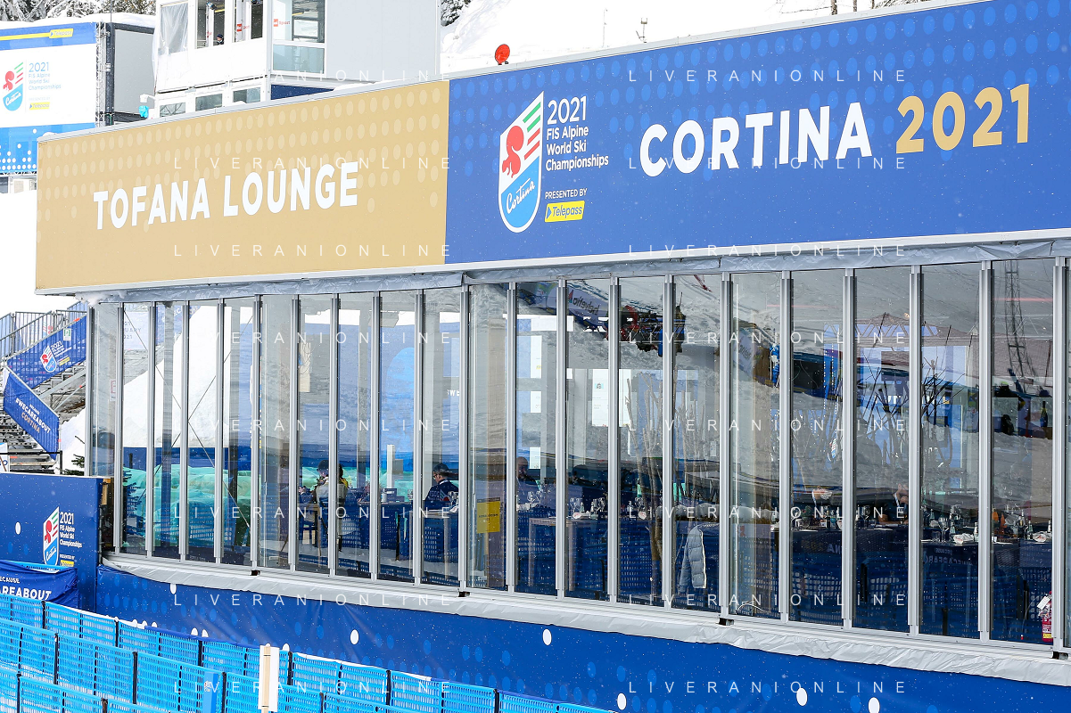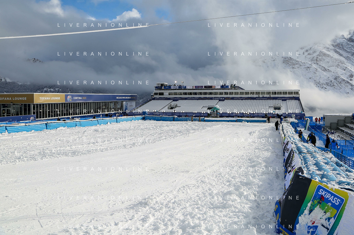 Luca Tedeschi/LM - 2021 FIS Alpine World SKI Championships - Alpine Combined - Women - alpine ski race 08 February 2021 - Olympia delle Tofane, cortina (bl), Italy Photo showing: Rumerlo finish area and Tofana Longe in Cortina d'Ampezzo where the Alpine Combined women race is cancelled due to snowfall @LM/Luca Tedeschi AG ALDO LIVERANI SAS