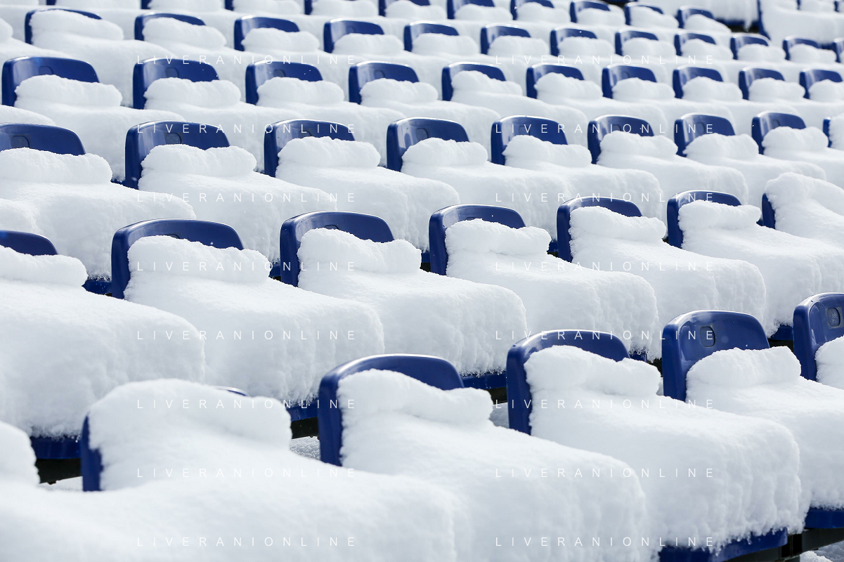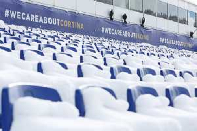 Luca Tedeschi/LM - 2021 FIS Alpine World SKI Championships - Alpine Combined - Women - alpine ski race 08 February 2021 - Olympia delle Tofane, cortina (bl), Italy Photo showing: No supporters in Cortina d'Ampezzo where the Alpine Combined women race is cancelled due to snowfall @LM/Luca Tedeschi AG ALDO LIVERANI SAS