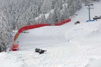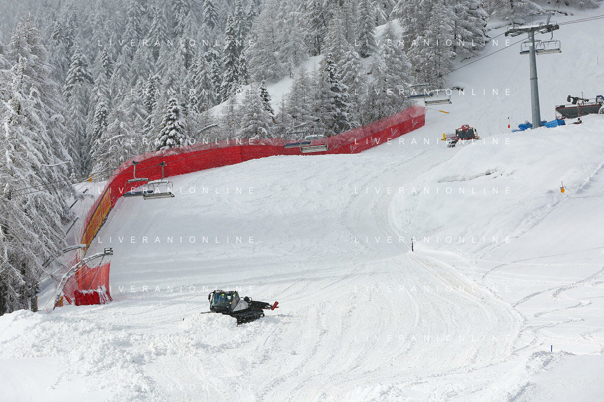 Luca Tedeschi/LM - 2021 FIS Alpine World SKI Championships - Alpine Combined - Women - alpine ski race 08 February 2021 - Olympia delle Tofane, cortina (bl), Italy Photo showing: Slope preparation in Cortina d'Ampezzo the Alpine Combined women race is cancelled due to snowfall @LM/Luca Tedeschi AG ALDO LIVERANI SAS