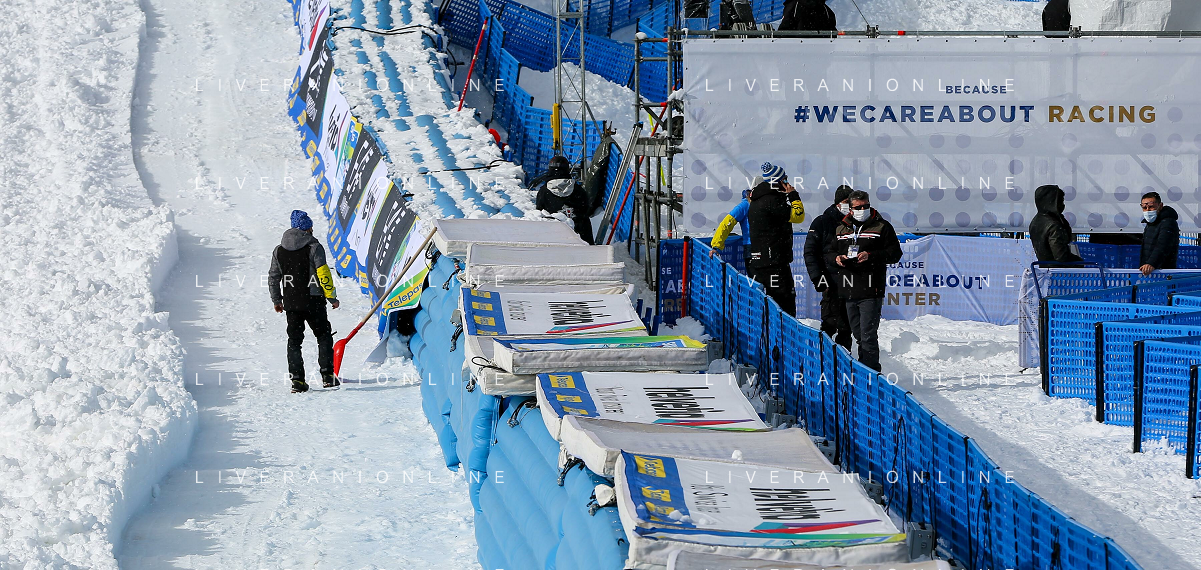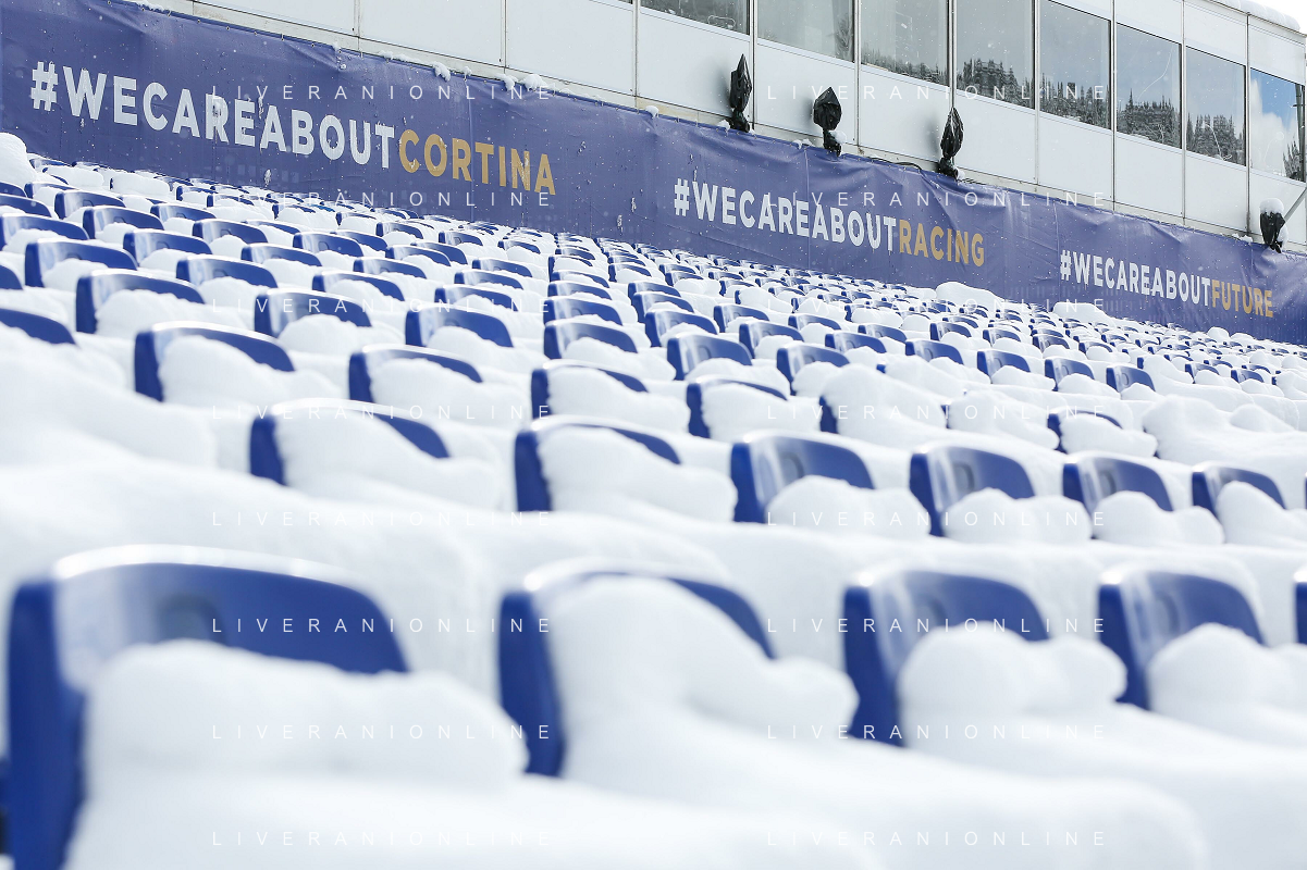 Luca Tedeschi/LM - 2021 FIS Alpine World SKI Championships - Alpine Combined - Women - alpine ski race 08 February 2021 - Olympia delle Tofane, cortina (bl), Italy Photo showing: Empty space in Cortina d'Ampezzo where the Alpine Combined women race is cancelled due to snowfall @LM/Luca Tedeschi AG ALDO LIVERANI SAS