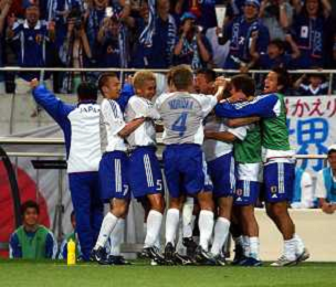 saitama 04/06/2002 mondiali 2002 giappone - belgio nella foto esultanza dopo gol giappone Agenzia Aldo Liverani Sas