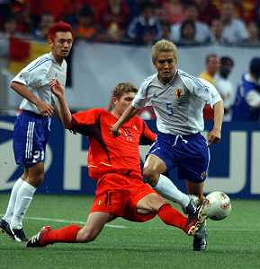 saitama 04/06/2002 mondiali 2002 giappone - belgio nella foto Junichi Inamoto e Yves Vanderhaeghe Agenzia Aldo Liverani Sas