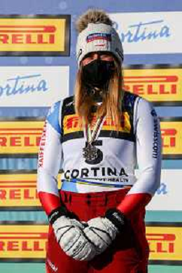 Sergio Bisi/LM - 2021 FIS Alpine World SKI Championships - Super G - Women - alpine ski race 11 February 2021 - Olympia delle Tofane, cortina (bl), Italy Photo showing: SUTER Corinne (SUI) SILVER MEDAL @LM/Sergio Bisi AG ALDO LIVERANI SAS