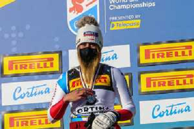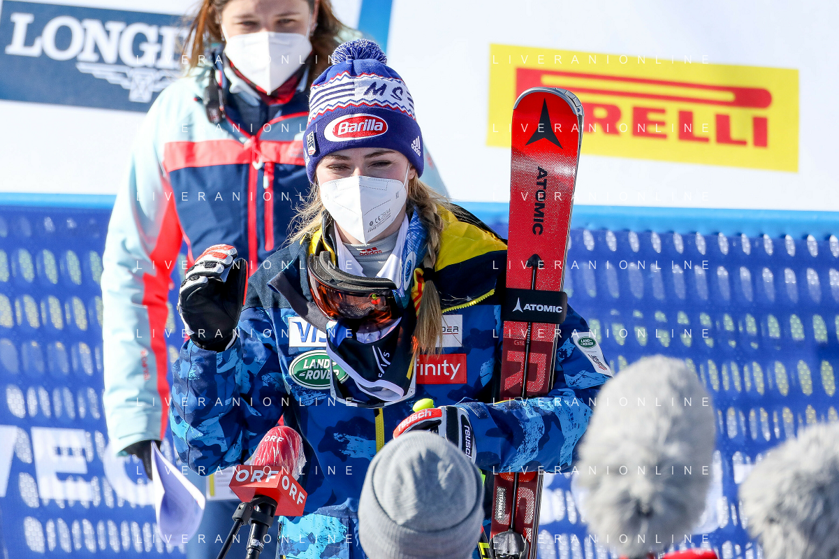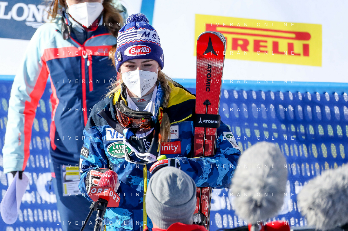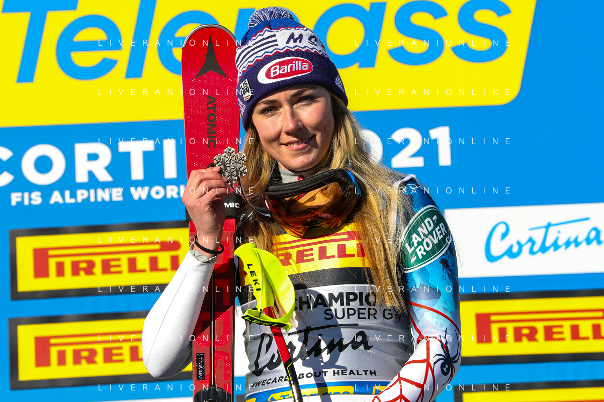 Sergio Bisi/LM - 2021 FIS Alpine World SKI Championships - Super G - Women - alpine ski race 11 February 2021 - Olympia delle Tofane, cortina (bl), Italy Photo showing: SHIFFRIN Mikaela (USA) BRONZE MEDAL @LM/Sergio Bisi AG ALDO LIVERANI SAS