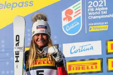 Sergio Bisi/LM - 2021 FIS Alpine World SKI Championships - Super G - Women - alpine ski race 11 February 2021 - Olympia delle Tofane, cortina (bl), Italy Photo showing: WORLEY Tessa (ITA) @LM/Sergio Bisi AG ALDO LIVERANI SAS