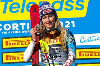 Luca Tedeschi/LM - 2021 FIS Alpine World SKI Championships - Super G - Women - alpine ski race 11 February 2021 - Olympia delle Tofane, cortina (bl), Italy Photo showing: Mikaela SHIFFRIN (USA) @LM/Luca Tedeschi AG ALDO LIVERANI SAS