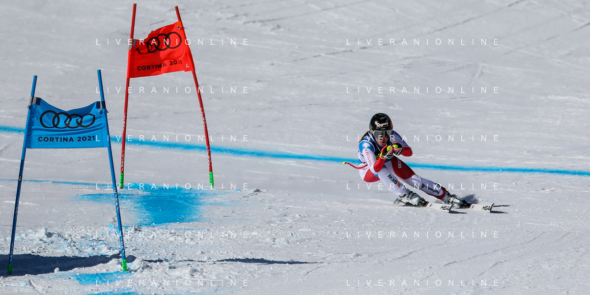 Luca Tedeschi/LM - 2021 FIS Alpine World SKI Championships - Super G - Women - alpine ski race 11 February 2021 - Olympia delle Tofane, cortina (bl), Italy Photo showing: Corinne SUTER (SUI) @LM/Luca Tedeschi AG ALDO LIVERANI SAS