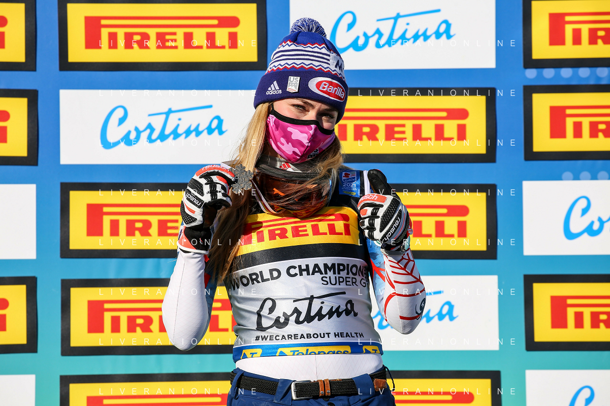 Sergio Bisi/LM - 2021 FIS Alpine World SKI Championships - Super G - Women - alpine ski race 11 February 2021 - Olympia delle Tofane, cortina (bl), Italy Photo showing: SHIFFRIN Mikaela (USA) BRONZE MEDAL @LM/Sergio Bisi/AGENZIA ALDO LIVERANI SAS