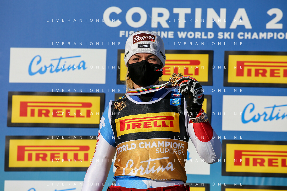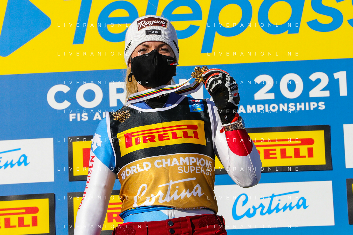 Sergio Bisi/LM - 2021 FIS Alpine World SKI Championships - Super G - Women - alpine ski race 11 February 2021 - Olympia delle Tofane, cortina (bl), Italy Photo showing: GUT-BEHRAMI Lara (SUI) GOLD MEDAL @LM/Sergio Bisi/AGENZIA ALDO LIVERANI SAS
