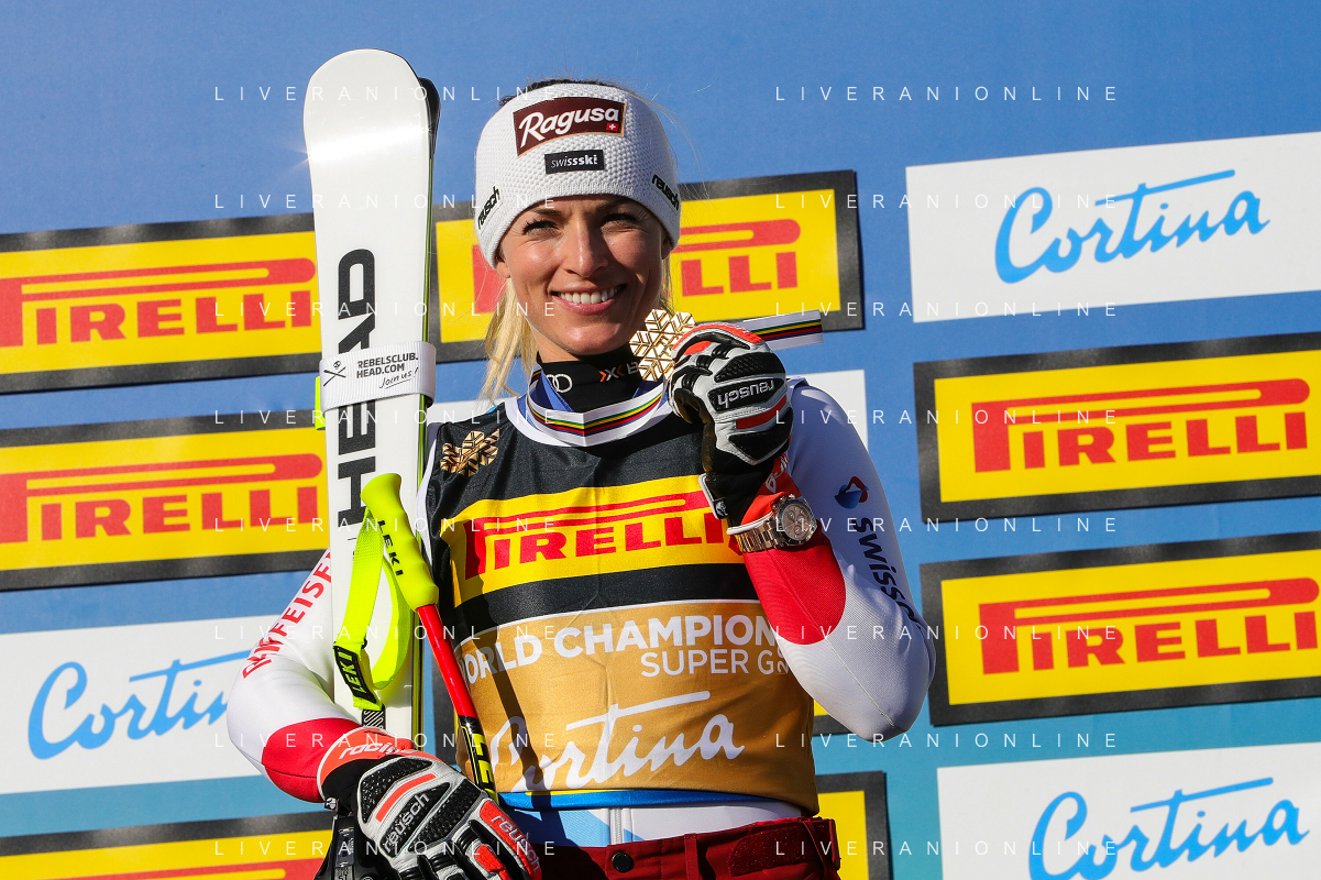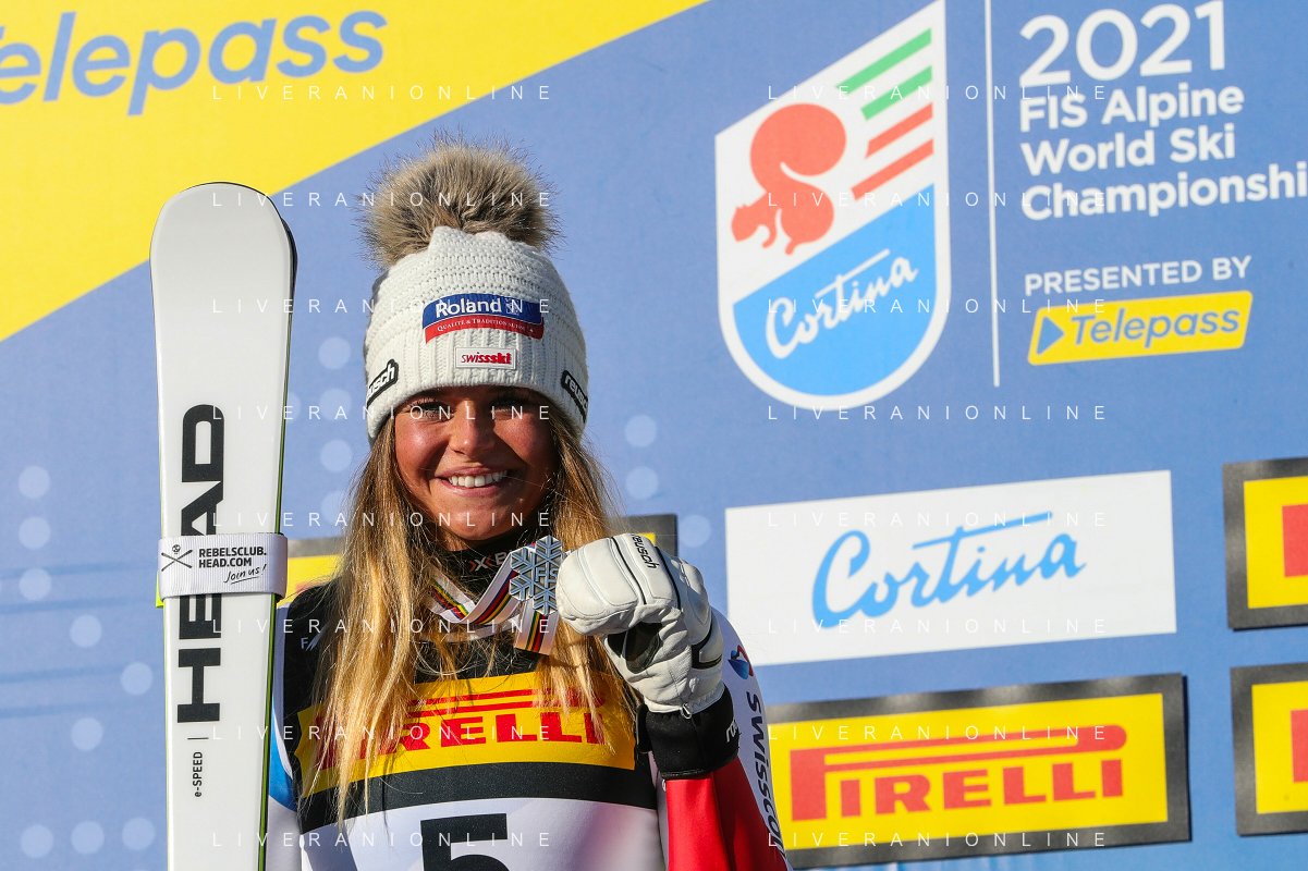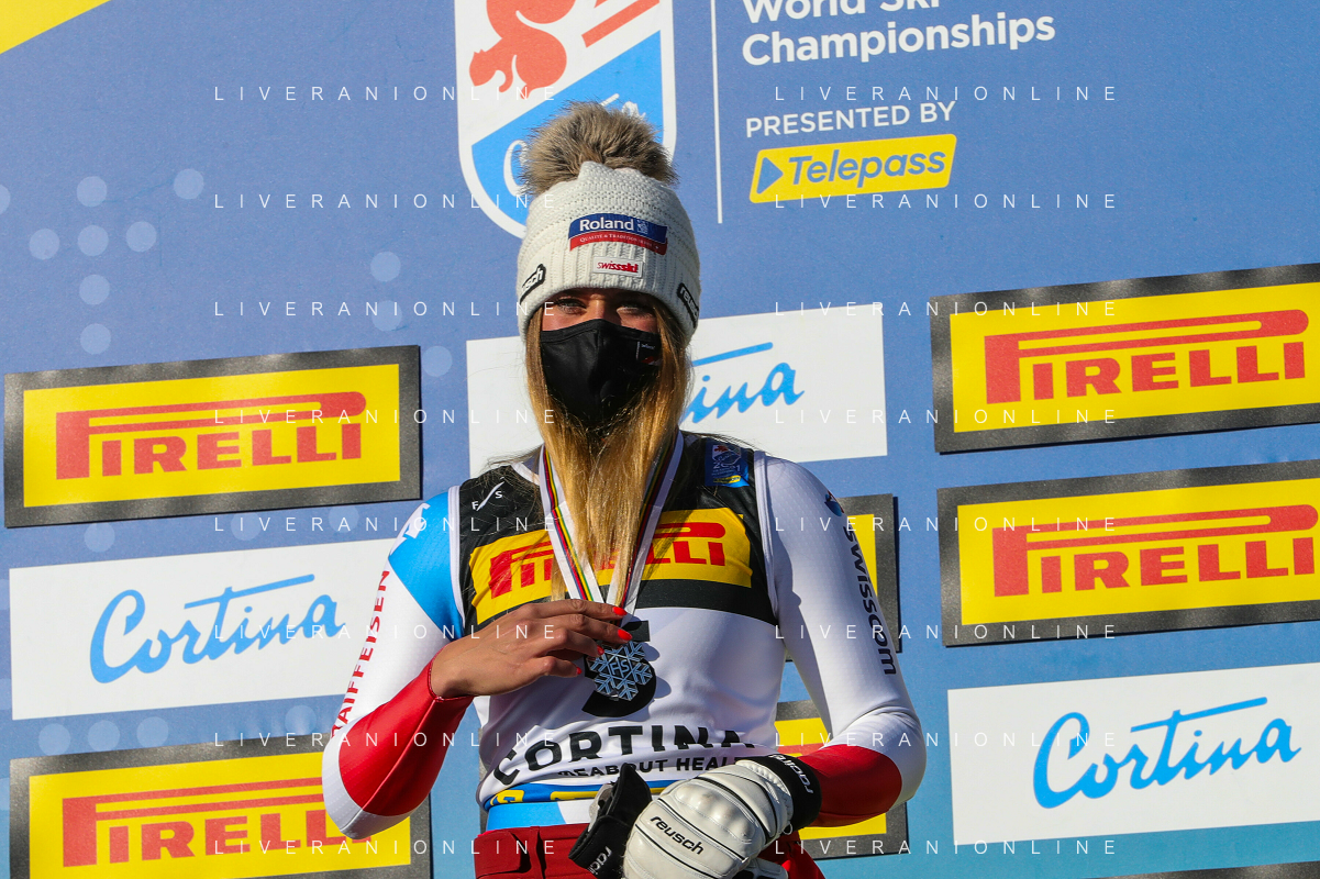 Sergio Bisi/LM - 2021 FIS Alpine World SKI Championships - Super G - Women - alpine ski race 11 February 2021 - Olympia delle Tofane, cortina (bl), Italy Photo showing: SUTER Corinne (SUI) SILVER MEDAL @LM/Sergio Bisi/AGENZIA ALDO LIVERANI SAS