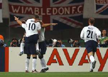 Mondiali corea-jappone 2002 niigata 15/06/2002 inghilterra-danimarca 3:0 nella foto esultanza dopo gol inghilterra Agenzia aldo liverani sas