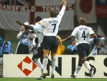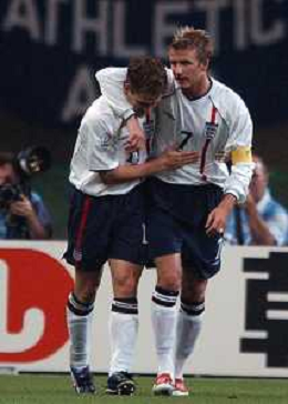 Mondiali corea-jappone 2002 niigata 15/06/2002 inghilterra-danimarca 3:0 nella foto michael owen beckham david esultanza Agenzia aldo liverani sas