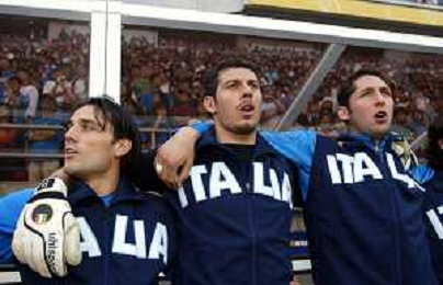 MONDIALI COREA E GIAPPONE 2002 NAZIONALE ITALIANA DI CALCIO NELLA FOTO MONTELLA VINCENZO, TOLDO FRANCESCO E MATERAZZI MARCO DURANTE L'INNO Agenzia Aldo Liverani Sas