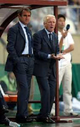 Mondiali calcio 2002 Corea-Giappone Nazionale italiana calcio 2002 NELLA FOTO TRAPATTONI GIOVANNI ALLENATORE CON PIETRO GHEDIN Agenzia Aldo Liverani Sas