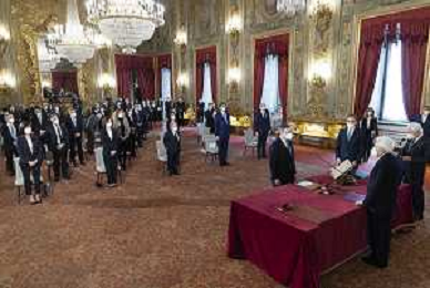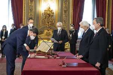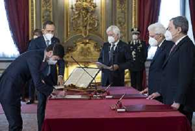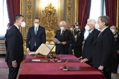 Il Presidente della Repubblica Sergio Mattarella e il Presidente del Consiglio Mario Draghi durante il giuramento del Ministro degli affari esteri e della cooperazione internazionale:Onorevole Luigi di Maio (foto di Francesco Ammendola - Ufficio per la Stampa e la Comunicazione della Presidenza della Repubblica) AG ALDO LIVERANI SAS