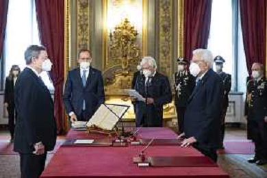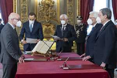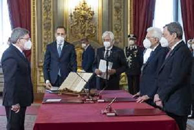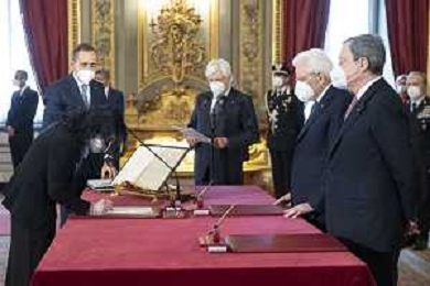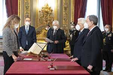 Il Presidente della Repubblica Sergio Mattarella e il Presidente del Consiglio Mario Draghi durante il giuramento dell'Onorevole Mariastella Gelmini, alla quale è stato conferito l’incarico per gli affari regionali e le autonomie (foto di Francesco Ammendola - Ufficio per la Stampa e la Comunicazione della Presidenza della Repubblica) AG ALDO LIVERANI SAS