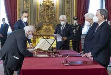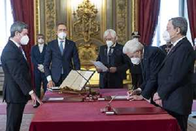 Il Presidente della Repubblica Sergio Mattarella e il Presidente del Consiglio Mario Draghi durante il giuramento del Ministro della difesa: Onorevole Lorenzo Guerini (foto di Francesco Ammendola - Ufficio per la Stampa e la Comunicazione della Presidenza della Repubblica) AG ALDO LIVERANI SAS