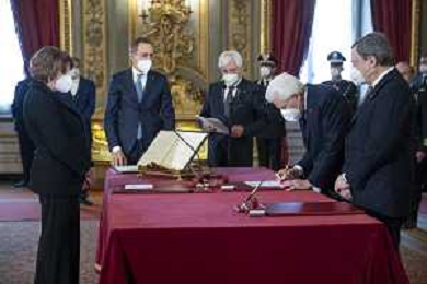 Il Presidente della Repubblica Sergio Mattarella e il Presidente del Consiglio Mario Draghi durante il giuramento del Ministro dell’interno: Dottoressa Luciana Lamorgese (foto di Francesco Ammendola - Ufficio per la Stampa e la Comunicazione della Presidenza della Repubblica) AG ALDO LIVERANI SAS