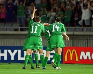 YOKOHAMA (GIAPPONE) 11/06/2002 MONDIALI CALCIO 2002 ARABIA SAUDITA - IRLANDA nella foto esultanza dopo gol irlanda Agenzia Aldo Liverani Sas