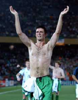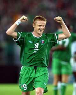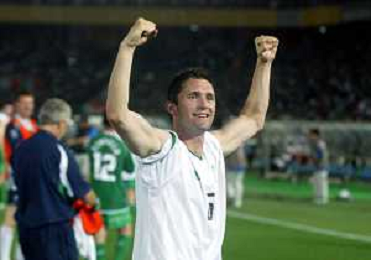YOKOHAMA (GIAPPONE) 11/06/2002 MONDIALI CALCIO 2002 ARABIA SAUDITA - IRLANDA nella foto NIALL quinn esultante a fine gara Agenzia Aldo Liverani Sas