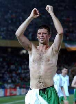 YOKOHAMA (GIAPPONE) 11/06/2002 MONDIALI CALCIO 2002 ARABIA SAUDITA - IRLANDA nella foto quinn NIALL esultante a fine gara Agenzia Aldo Liverani Sas