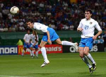 OITA (GIAPPONE) 13/06/2002 Mondiali CALCIO 2002 MESSICO - ITALIA nella foto il gol di alessandro del piero e vieri christian Agenzia Aldo Liverani Sas