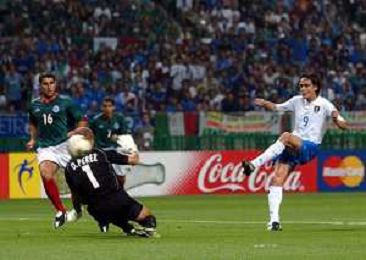 OITA (GIAPPONE) 13/06/2002 Mondiali CALCIO 2002 MESSICO - ITALIA nella foto montella vincenzo e salvador carmona Agenzia Aldo Liverani Sas