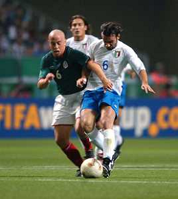 OITA (GIAPPONE) 13/06/2002 Mondiali CALCIO 2002 MESSICO - ITALIA nella foto cannavaro fabio con Cuauhtemoc blanco agenzia aldo liverani sas blanco