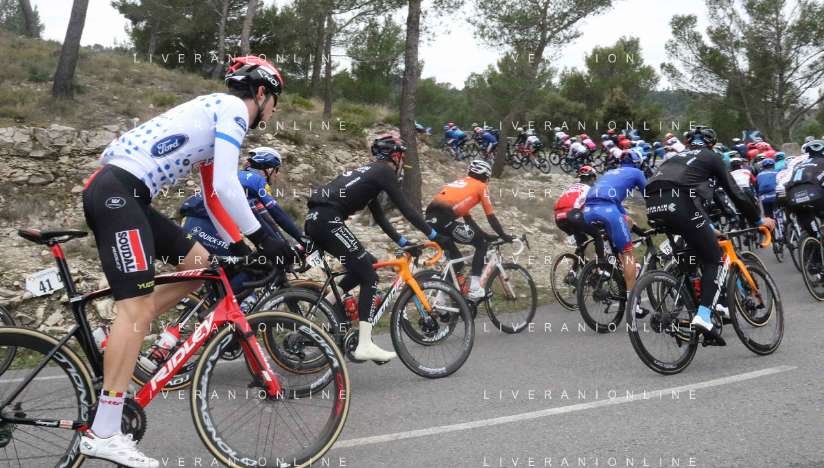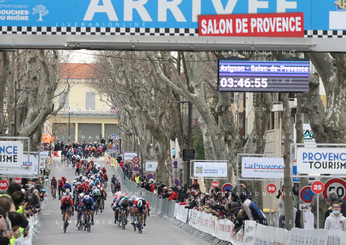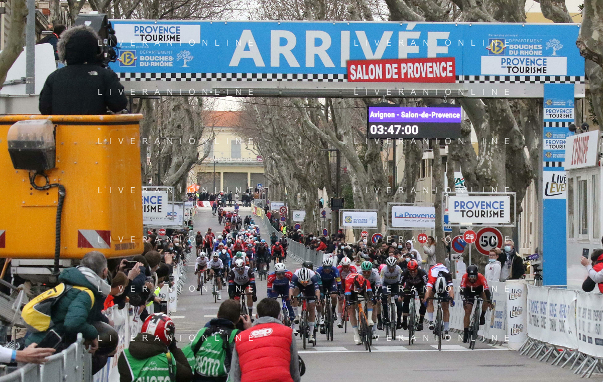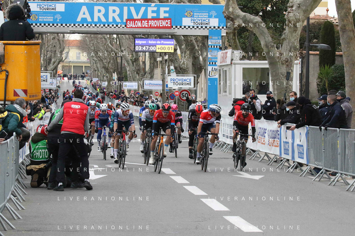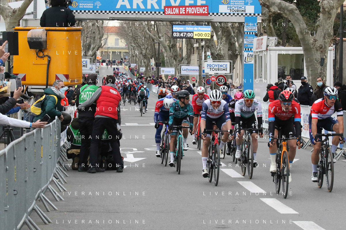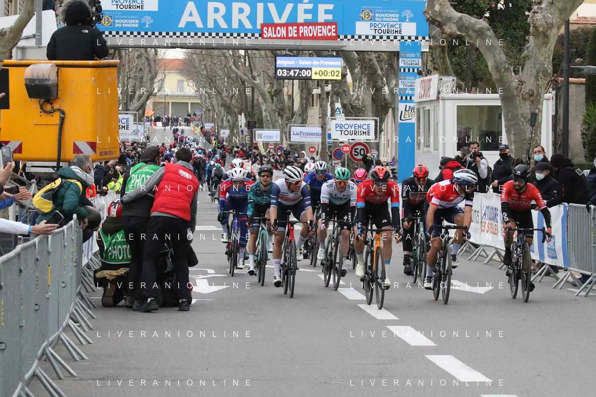 14-02-2021 Tour De La Provence; Tappa 04 Avignon - Salon De Provence; 2021, Bahrain - Victorious; 2021, Deceuninck - Quick Step; 2021, Arkea - Samsic; Bauhaus, Phil; Ballerini, Davide; Bouhanni, Nacer; Salon De Provence;