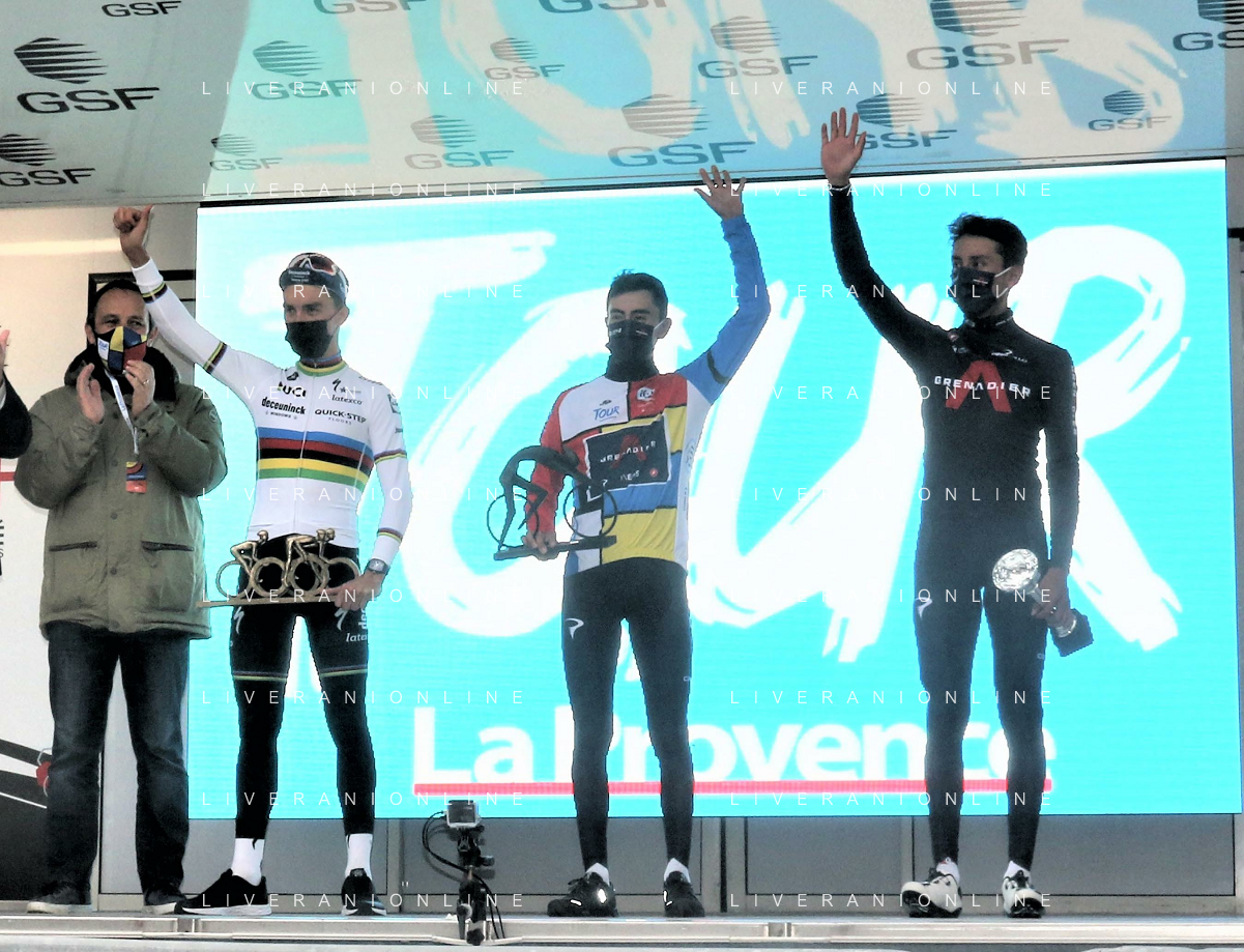 14-02-2021 Tour De La Provence; Tappa 04 Avignon - Salon De Provence; 2021, Ineos Grenadiers; 2021, Deceuninck - Quick Step; Sosa Cuervo, Ivan Ramiro; Bernal Gomez, Arley; Alaphilippe, Julian; Salon De Provence;